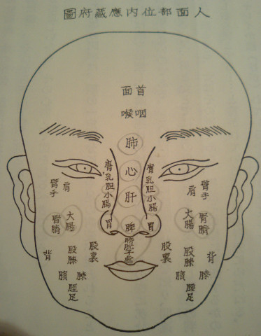霊枢(れいすう)という東洋医学の古書には顔に人体の対応する部分があることを説いています。