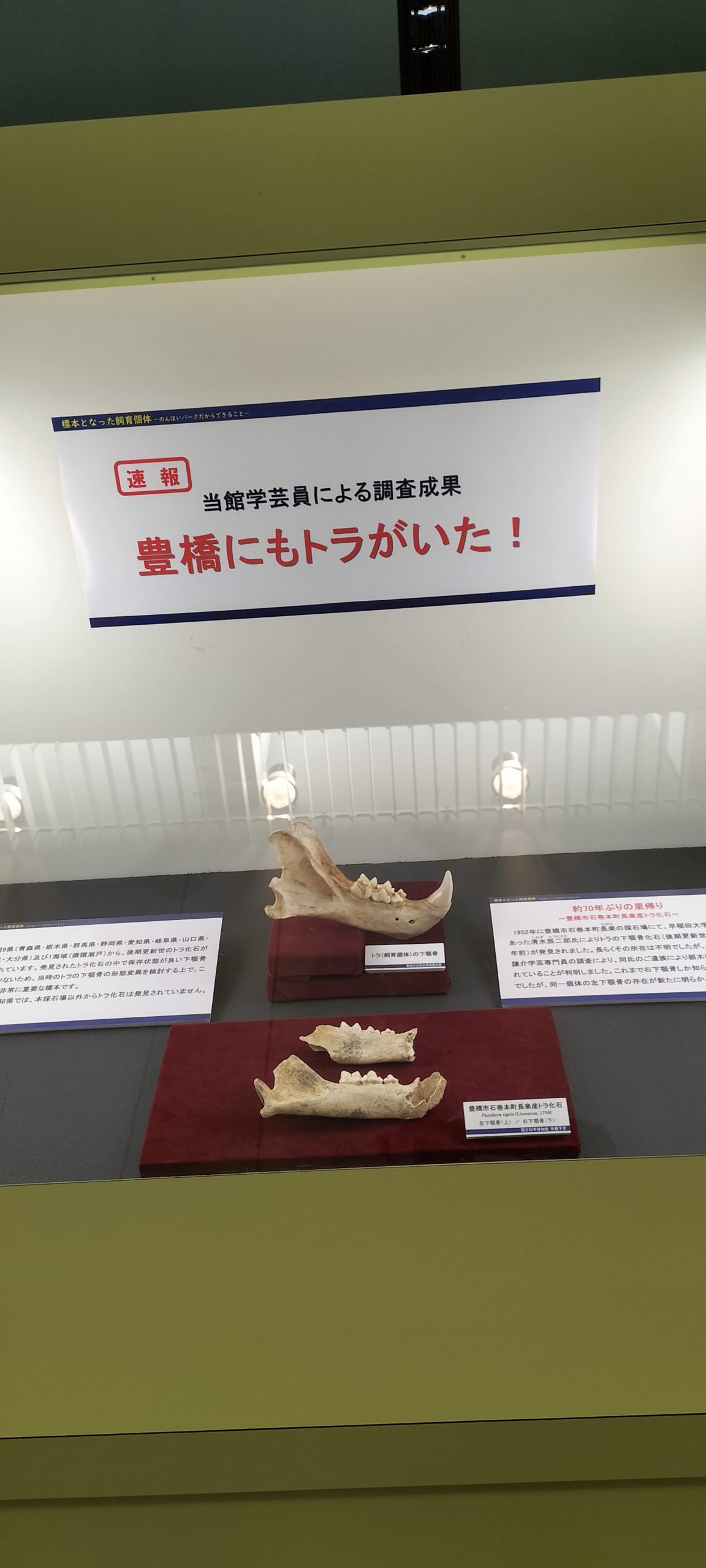驚いたことに豊橋の石巻本町か昔、2~3億年前の虎の顎の骨が発掘されたそうです。 長年その骨の行方が分からなかったそうですが、最近になって栃木県で見つかり現在自然史博物館にて展示されているそうです。最新ニュースらしいので、皆さん是非見に行ってください。